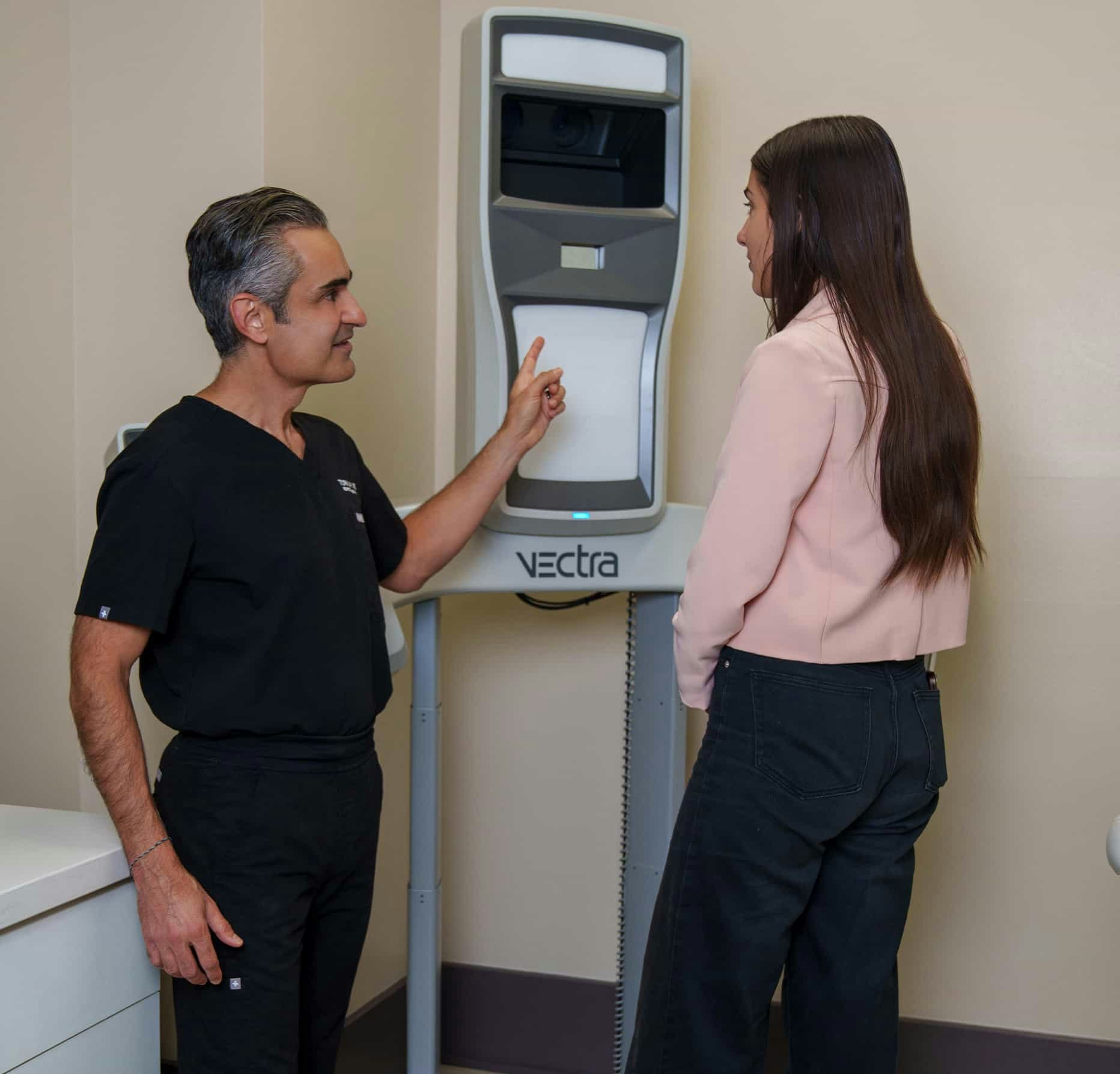 The process starts with a Vectra 3D session, which produces a three-dimensional photograph of the patient. Then, using Sculptor software, Dr. Torkian is able to simulate the expected results of a variety of aesthetic procedures, including rhinoplasty, chin augmentation, and more. Because they are 3D models, these images can be viewed from all angles, in addition to side-by-side comparisons and translucent overlays.