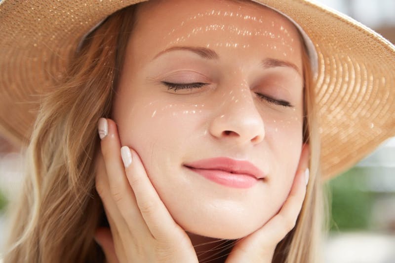 After your regular morning routine, make sure to apply sunblock to protect your skin. Most dermatologists recommend at least SPF 15 or higher. Many moisturizers and other skincare products contain an SPF formula in them. Good choices for sunblock products are those that include Zinc oxide and Titanium oxide for quicker protection. If you are spending time outside, it is important to reapply sunblock. You might also consider adding a wide-brimmed hat and sunglasses to protect your face and eyes. You can also choose sun protective fabrics in the summer to further shield skin from UV damage. Rash guards are a great option for beachy fun—especially for kids as you don’t have to put sunscreen on skin that is covered by the fabric. This gives kids extra time to play in the sun and alleviates the stress of having to reapply sunblock every two hours.